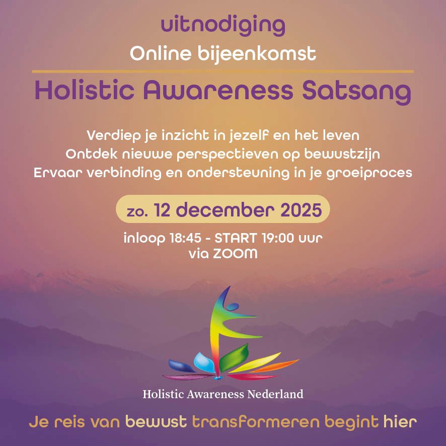 Tijdens deze online Satsang gaan we dieper in op een specifiek onderwerp binnen Holistic Awareness. We creëren een veilige ruimte voor uitwisseling, verdieping en inspiratie.
